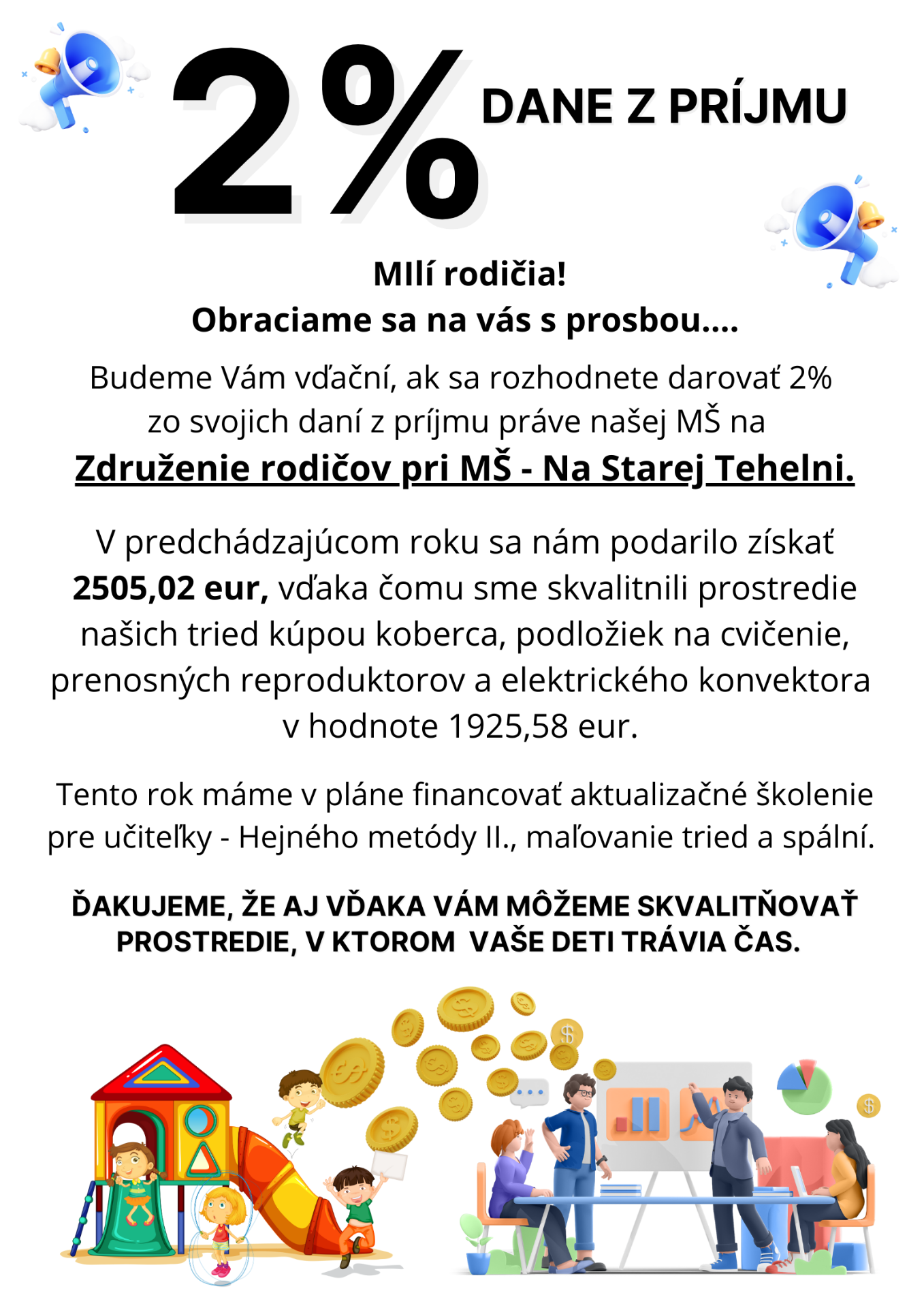 Venujte 2% z vašich daní a pomôžte skvalitniť život v našej MŠ